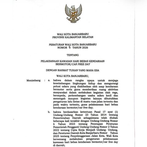 NEWSWAY.CO.ID, BANJARBARU – Pemerintah Kota Banjarbaru akan memperluas area Hari Bebas Kendaraan Bermotor atau Car Free Day (CFD) yang awalnya ahnaya seputaran lapangan dr Murdjani kini