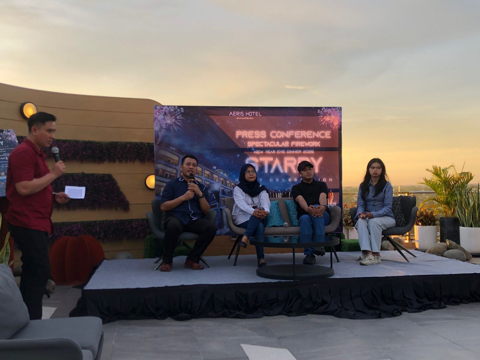 General Manager Aeris Hotel Banjarbaru Ariyadi, dalam konferensi pers di Rooftop Hotel pada Sabtu (6/12/2025) sore menegaskan, seluruh rangkaian acara—termasuk pesta kembang api—telah mengantongi izin resmi dari berbagai instansi terkait.