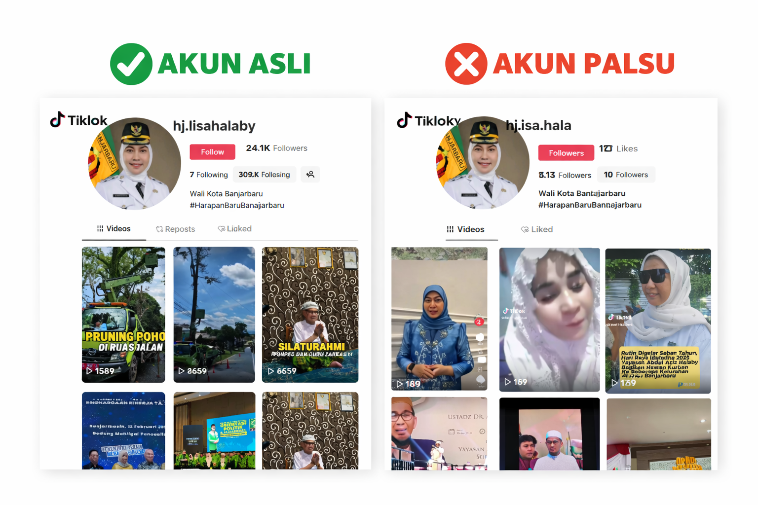 NEWSWAY.CO.ID, BANJARBARU – Masyarakat Kota Banjarbaru kembali diingatkan untuk meningkatkan kewaspadaan terhadap maraknya akun media sosial palsu yang mengatasnamakan pejabat publik. Kali ini, sebuah akun TikTok diduga mencatut nama dan identitas Wali Kota Banjarbaru Erna Lisa Halaby.