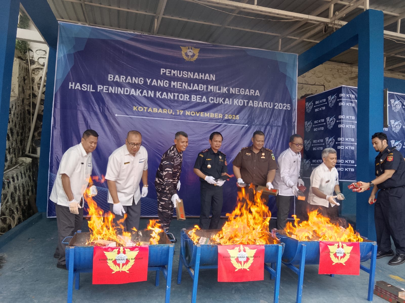 NEWSWAY.CO.ID, KOTABARU – Kantor Pengawasan dan Pelayanan Bea dan Cukai (KPPBC) Tipe Madya C Kotabaru melaksanakan pemusnahan barang kena cukai (BKC) ilegal hasil 74 penindakan yang dilakukan periode September 2024 hingga September 2025, pada Senin (17/11/2025).