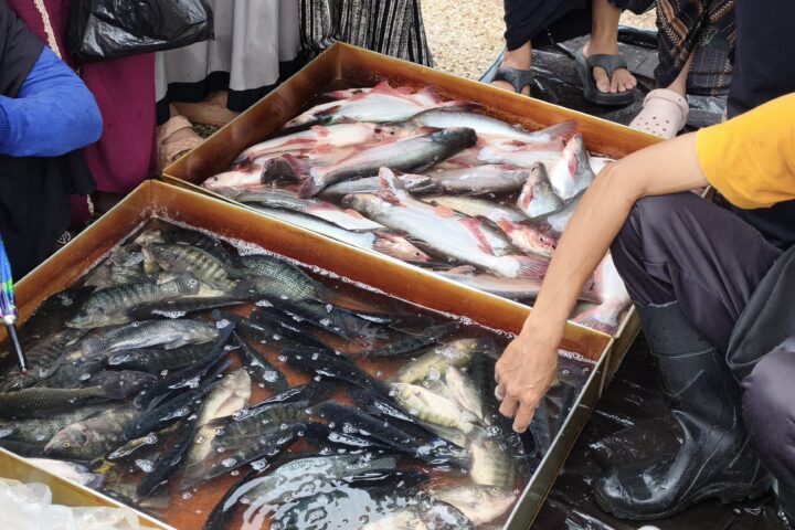 [10.57, 11/3/2026] Ervan Newsway: Pasar murah di Halaman Kantor Bupati Banjar (Foto : Muhammad Ervan Ariya Ramadani/newsway.co.id) [10.57, 11/3/2026] Ervan Newsway: DKPP Banjar Sediakan Beras Lokal dan Ikan Bersubsidi di Pasar Murah Kantor Bupati Banjar NEWSWAY.CO.ID, MARTAPURA – Dinas Ketahanan Pangan dan Perikanan (DKPP) Kabupaten Banjar menyediakan beras lokal dan ikan bersubsidi pada kegiatan pasar murah yang digelar di halaman Kantor Bupati Banjar, Rabu (11/03/2026) hingga Kamis (12/03/2026). Kegiatan tersebut merupakan bagian dari rangkaian penutupan pasar murah Ramadan yang dilaksanakan Pemerintah Kabupaten Banjar selama dua hari untuk membantu masyarakat memperoleh bahan pangan dengan harga lebih terjangkau. Kepala Bidang Ketersediaan dan Distribusi Pangan DKPP Kabupaten Banjar, M. Hamdani mengatakan, pihaknya menyiapkan dua komoditas utama dalam kegiatan tersebut, yakni beras lokal serta ikan air tawar. “Untuk hari ini kami menjual beras lokal jenis unus. Per kantong dijual seharga Rp40 ribu dengan isi 4 liter. Harga tersebut sudah mendapatkan subsidi dari pemerintah daerah sebesar Rp20 ribu per kantong,” ujarnya. Ia menjelaskan, pada hari pertama kegiatan pihaknya menyiapkan sekitar 200 kantong beras atau setara 400 liter. Jumlah yang sama juga akan kembali disediakan pada hari kedua kegiatan pasar murah. Selain beras, DKPP juga membawa ikan air tawar yang terdiri dari ikan nila dan ikan patin. Kedua jenis ikan tersebut dijual dengan harga lebih murah karena mendapatkan subsidi dari pemerintah daerah. “Untuk ikan nila dan patin ini kita berikan subsidi sekitar Rp10 ribu per kilogram dibandingkan harga pasar,” jelas Hamdani. Pada hari pertama pasar murah, DKPP menyiapkan sekitar 100 kilogram ikan nila dan patin. Stok yang sama juga akan disediakan kembali pada hari berikutnya. Ia mengatakan, antusiasme masyarakat terhadap pasar murah tersebut cukup tinggi karena harga komoditas yang dijual lebih murah dibandingkan harga pasar. “Antusias masyarakat cukup tinggi. Ada juga yang belum kebagian hari ini dan kemungkinan akan membeli besok karena stok hari ini sudah terbatas,” katanya. Untuk pemerataan, pembelian komoditas dibatasi satu paket untuk setiap orang. Selain itu masyarakat juga diwajibkan menunjukkan KTP Kabupaten Banjar saat melakukan pembelian. “Setiap orang hanya bisa membeli satu paket dengan menunjukkan KTP Kabupaten Banjar agar bantuan ini tepat sasaran,” pungkasnya.(nw) [10.58, 11/3/2026] Ervan Newsway: DKPP Banjar sediakan Ikan bersubsidi di Pasar Murah. (Foto : Muhammad Ervan Ariya Ramadani/newsway.co.id)