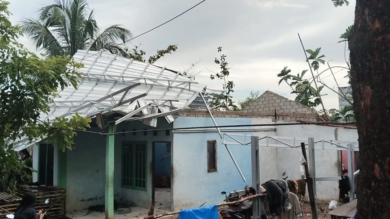 Peristiwa tersebut menyebabkan pohon tumbang, atap rumah terangkat hingga kabel dan tiang listrik terdampak. Sedikitnya empat rumah warga dilaporkan mengalami kerusakan.