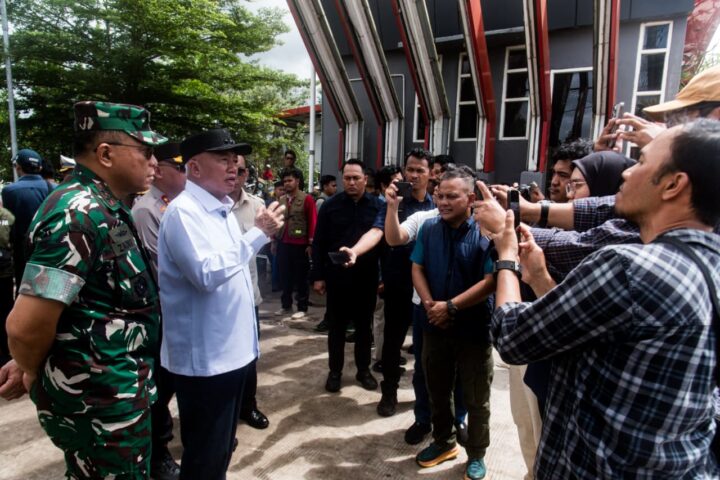 Gubernur Haji Muhidin menjelaskan kepada wartawan mengenai persiapan menyambut kunjungan Presiden Prabowo, (foto:adpim)