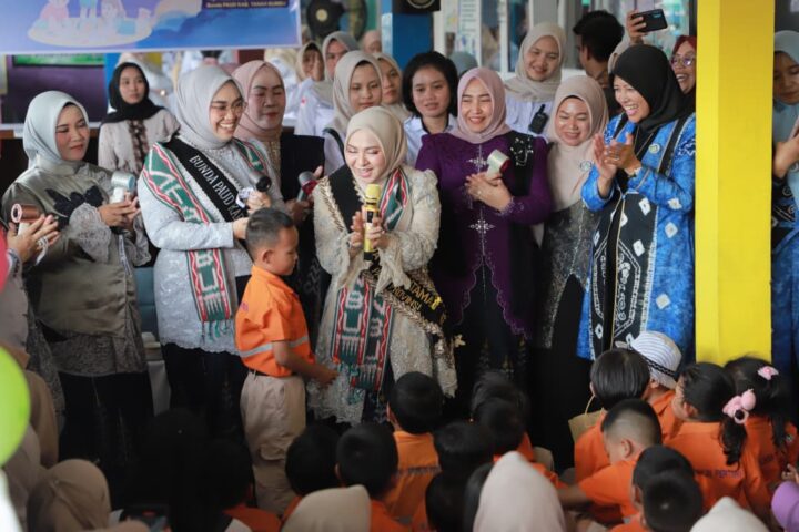 Bunda PAUD Kalsel Hj. Fathul Jannah Ceria Bersama Anak-Anak TK Tanah Bumbu, Nyanyikan “7 Kebiasaan Anak Hebat”