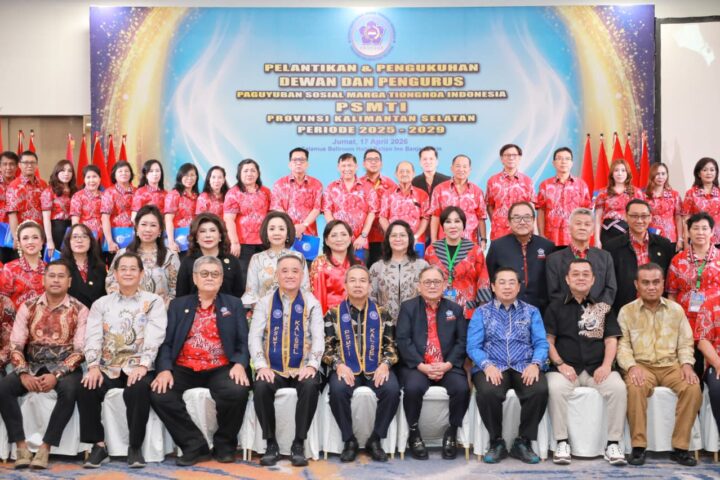 Pelantikan dan pengukuhan Pengurus Paguyuban Sosial Marga Tionghoa Indonesia (PSMTI) Provinsi Kalsel periode 2025–2029, di Calamus Ballroom Rattan Inn Hotel Banjarmasin pada Jumat (17/4/2026) malam. (foto: adpim)
