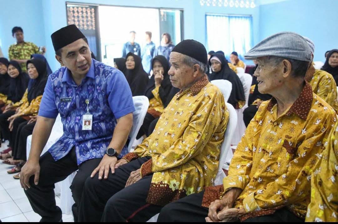 Wakil Gubernur Jawa Tengah Taj Yasin berbincang-bincang dengan lansia di Pusat Pelayanan Sosial Lanjut Usia (PPSLU) Sudagaran Kecamatan Banyumas, Selasa (23/12/2025). (Foto : Suho/newsway.co.id)
