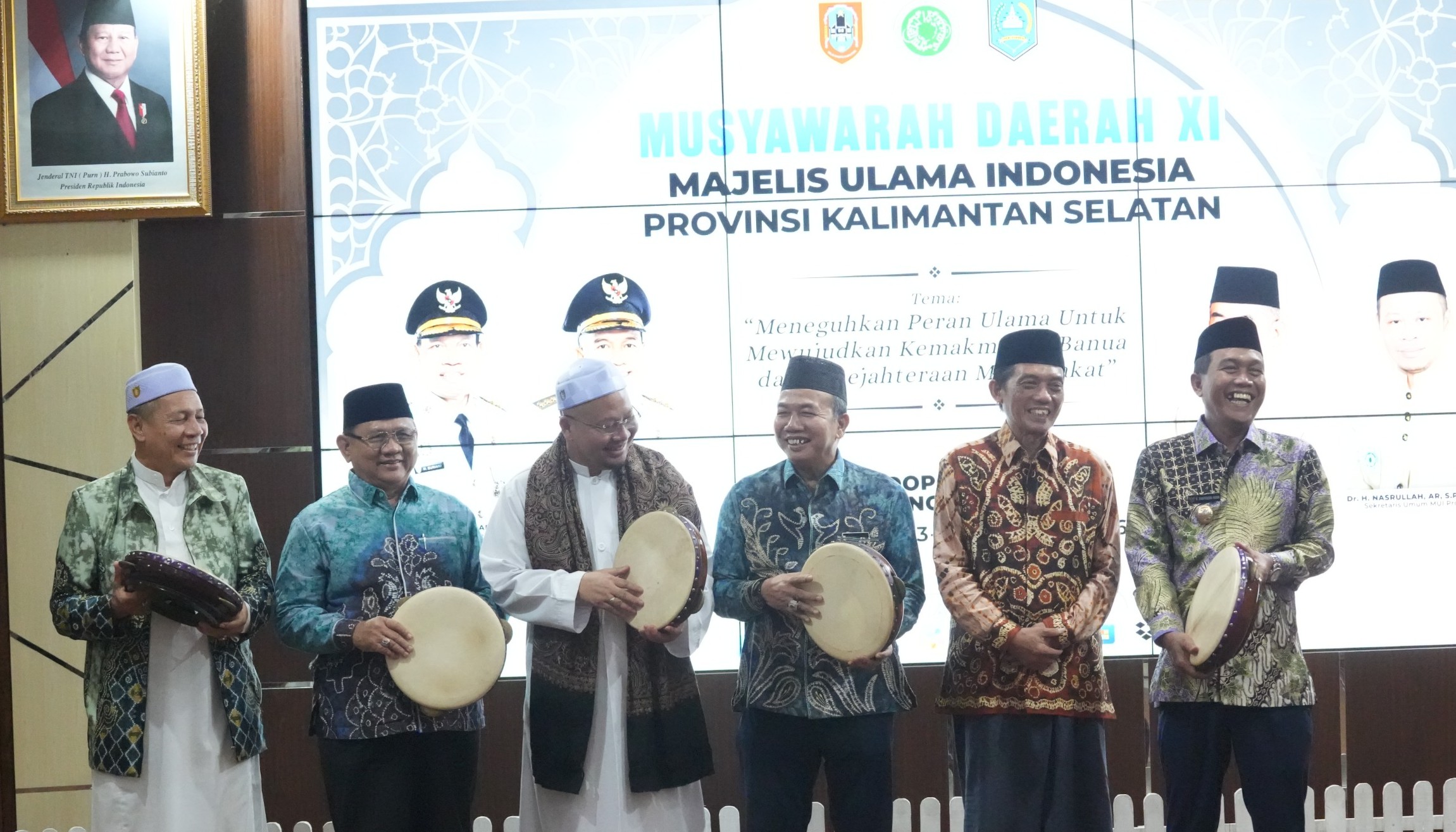 Pemukulan rebana sebagai tanda dibukanya Musyawarah Daerah (Musda) XI Majelis Ulama Indonesia Kalimantan Selatan di Pendopo Bupati Kabupaten Hulu Sungai Selatan, Jumat (13/2/2026) malam. (foto: adpim)