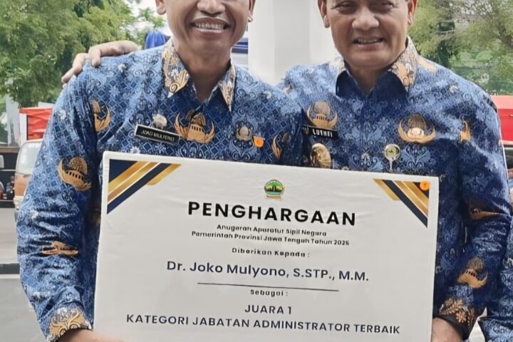 Gurbernur Jateng Achmad Lutfi foto bersama dengan Joko Mulyono yang mendapatkan predikan ASN terbaik 2025. (Foto : Suho/newsway.co.id)