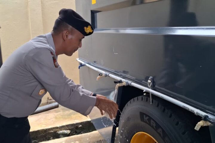 Kasat Samapta Polres Banjarbaru, Mencoba Keran Air. (Foto: Newsway.co.id)