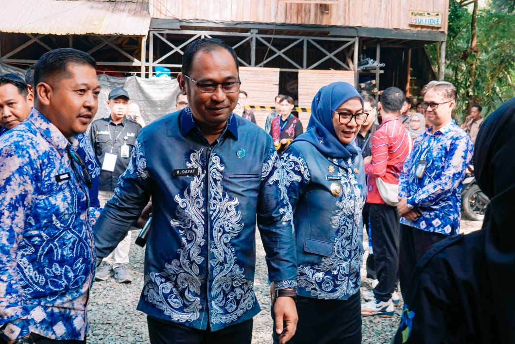 Wali Kota Banjarbaru Hk Erna Lisa Halaby didampingi Ketua PKK, Riyandi Hidayat saat mengjadiri puncak peringatan HAN di Loksado HSS. (Foto : Media Center/newsway.co.id)
