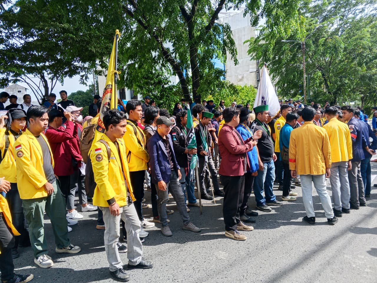 Massa kemudian masuk secara tertib sesuai barisan universitas masing-masing. Di dalam gedung, para Ketua BEM dari berbagai kampus menyampaikan tiga isu utama:
