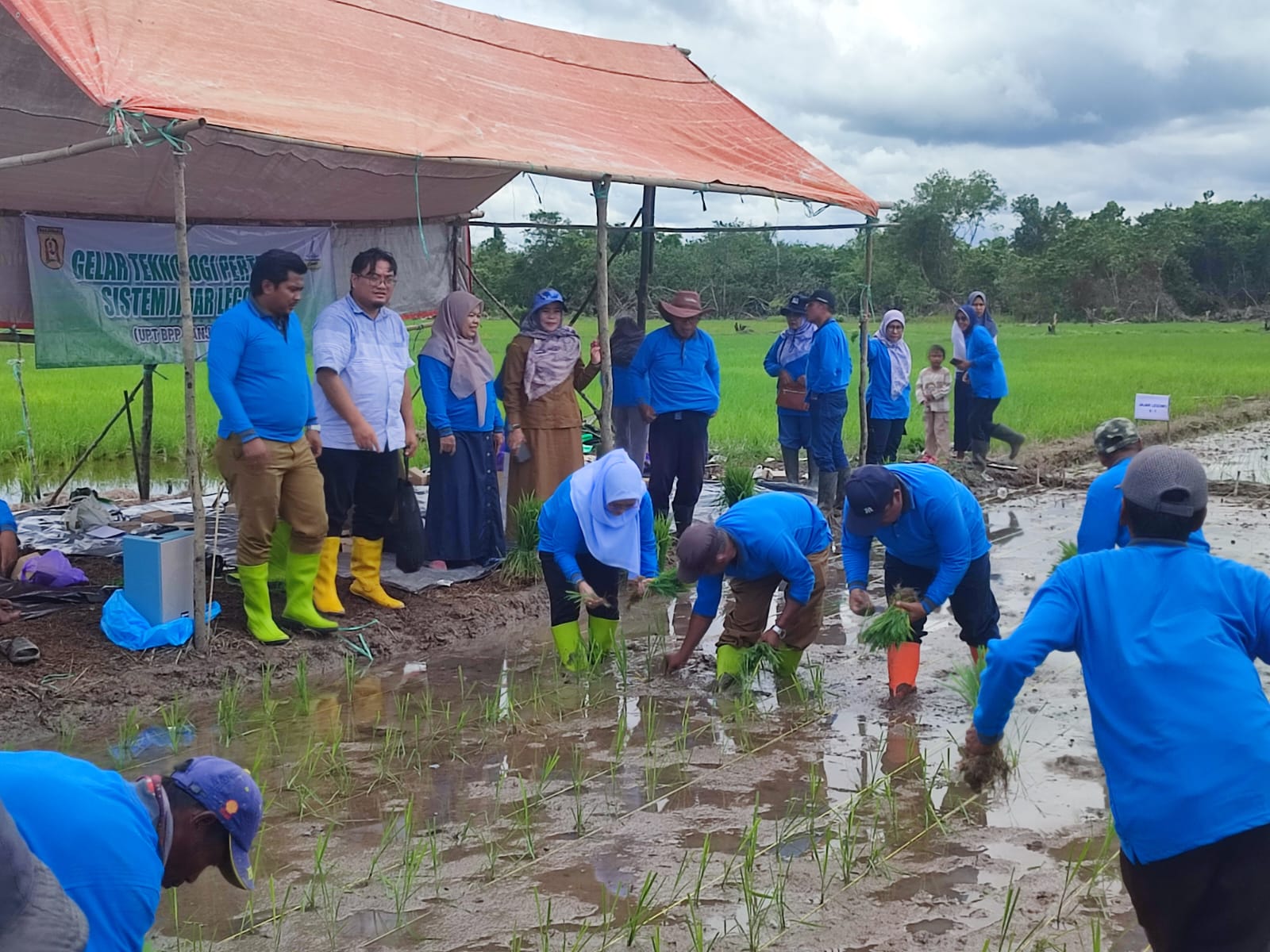 Kegiatan ini diikuti oleh enam kelompok tani (poktan) yang antusias menyaksikan langsung praktik penanaman dengan metode tanam modern tersebut.