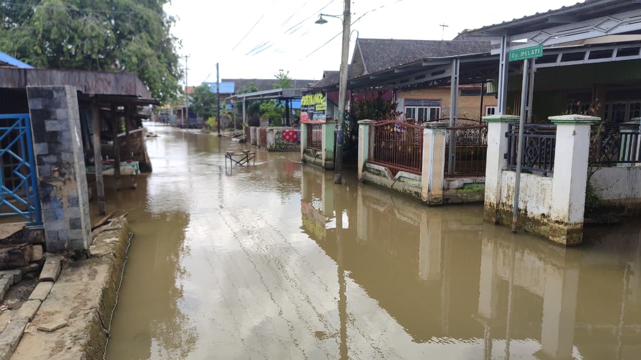 Air memang mulai surut dalam beberapa hari terakhir, namun sisa genangan masih menutup sebagian badan jalan. Kondisi ini diperparah oleh posisi jalan yang lebih rendah dibanding lingkungan sekitar, membuat air kerap bertahan lama meski hujan tidak lagi turun deras.