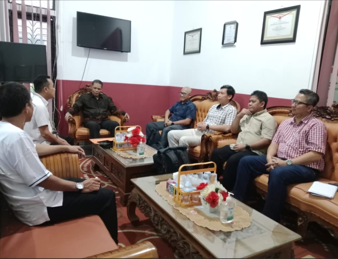 Rombongan GIZ hadir bersama Ketua Forum Pengurangan Risiko Bencana (FK PRB) API, Sekretaris FK PRB Warhamni, serta jajaran pejabat BPBD Banjar mulai dari Plt Sekretaris hingga Kepala Bidang Pencegahan dan Kesiapsiagaan. Pertemuan berjalan hangat dengan pembahasan mengenai tantangan kebencanaan dan strategi peningkatan kapasitas daerah.