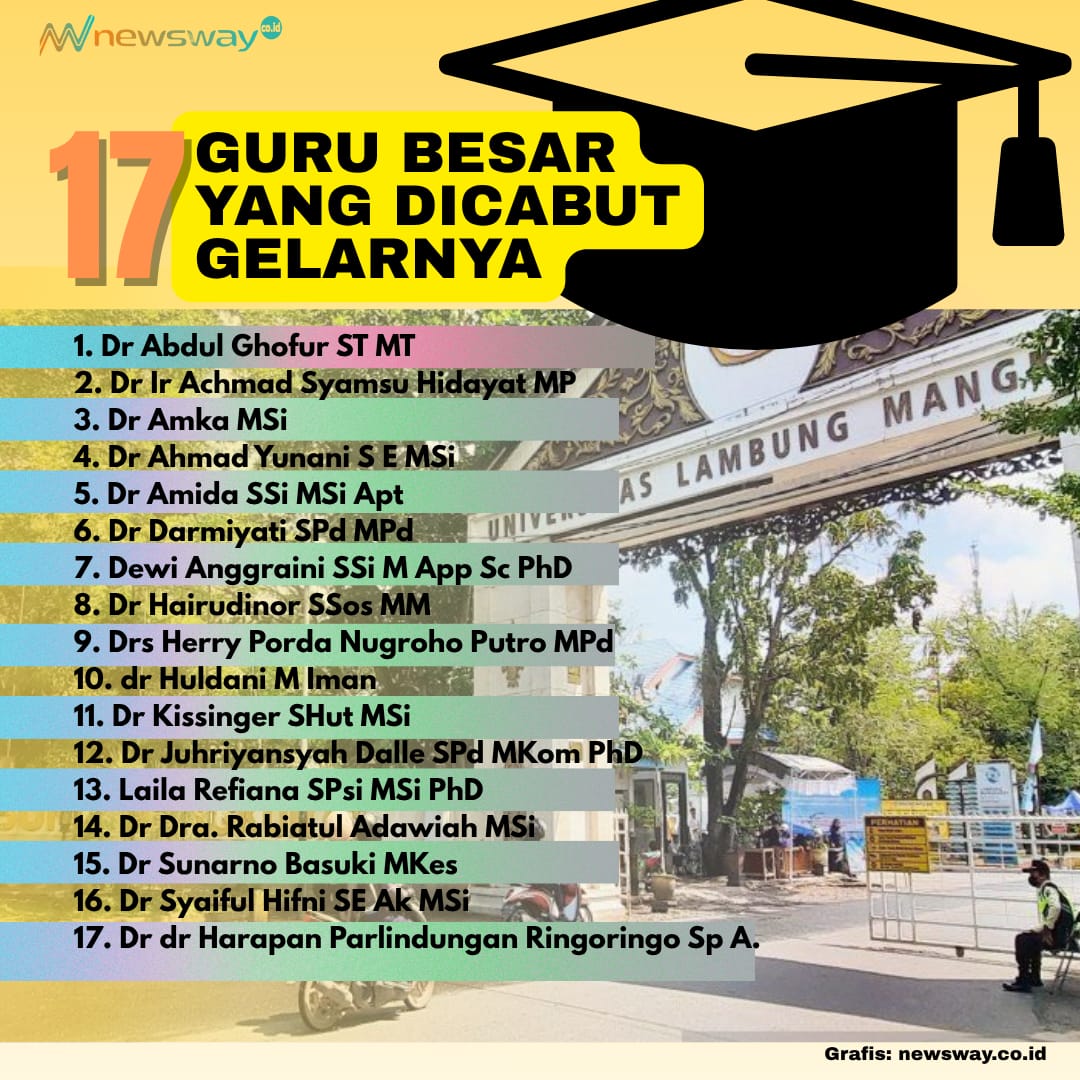Grafik 17 Guru Besar Unlam.yamg dicopot gelarnya. (Foto : Grafis newsway.co.id)