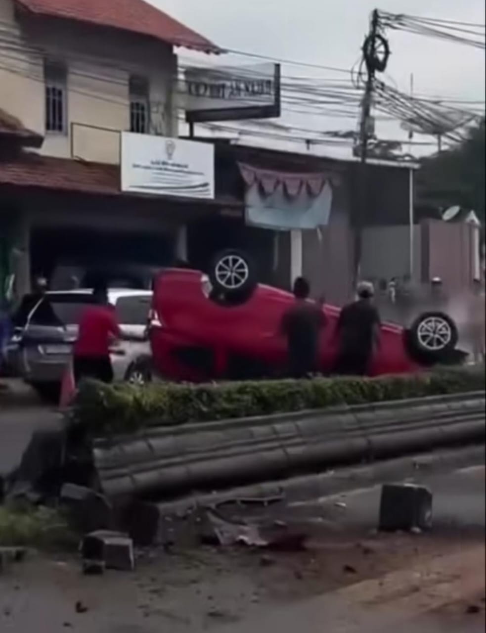 Sebuah mobil dilaporkan menabrak pembatas jalan hingga mengalami jungkir balik. Berdasarkan informasi awal yang diperoleh di lokasi kejadian, kecelakaan diduga disebabkan karena pengemudi dalam kondisi mengantuk (mikrosleep) saat melintas di jalur tersebut.