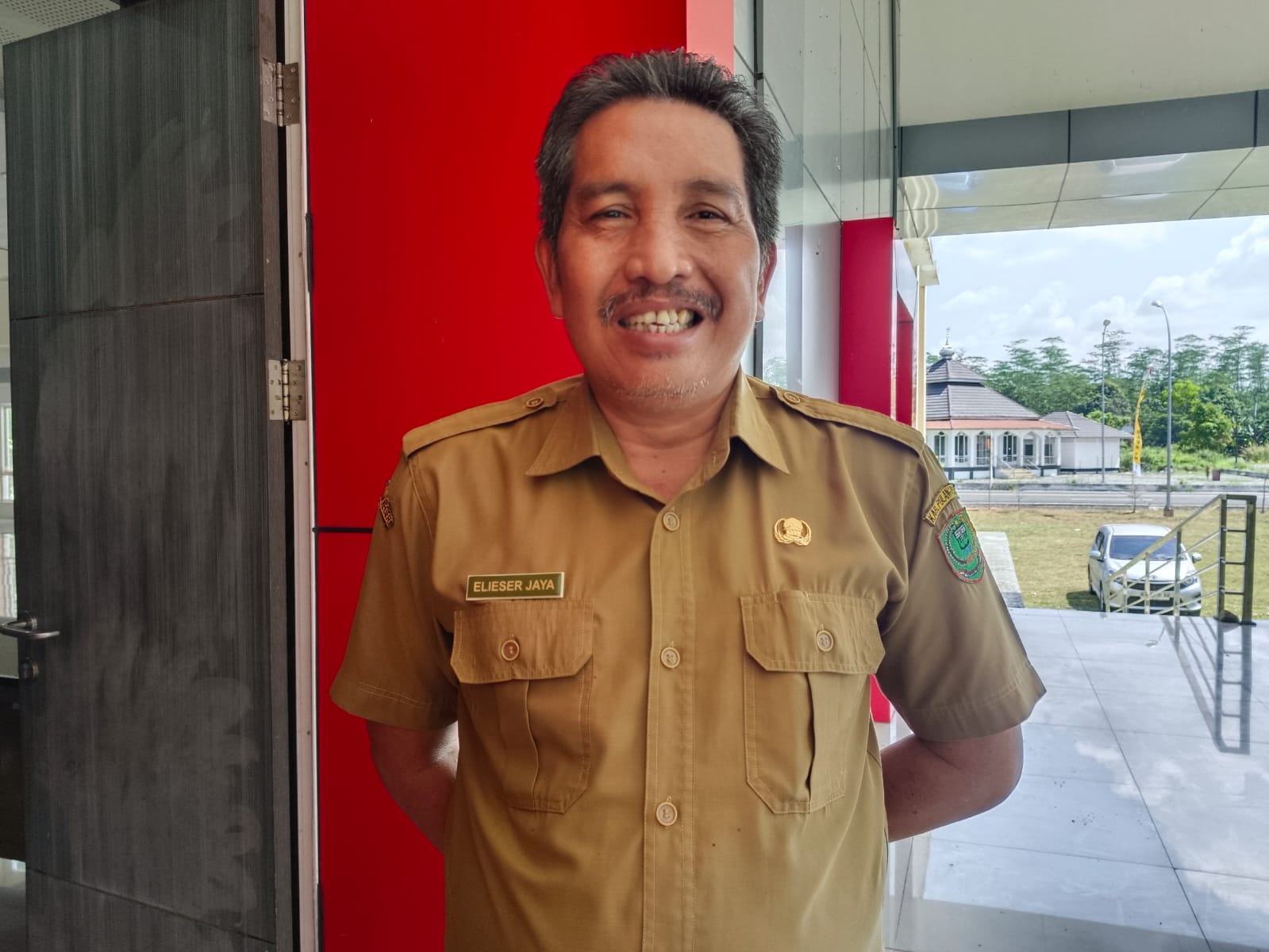 Kepala Dinas (Kadis) Dinas Perindustrian, Perdagangan, Koperasi (Disperindagkop) dan UKM Pulpis Elieser Jaya, usai diwawancara. ( Foto : Winda/newsway.co.id)