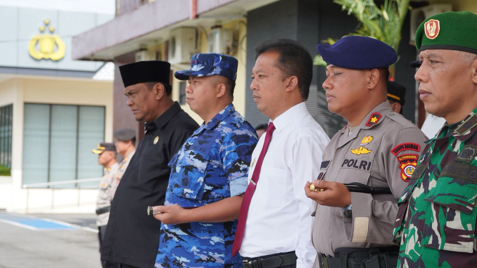 Forkompinda Kulon Progo melaksanakan apel kesiapsiagaan bencana hidrometeorologi di Halaman Mapolres Kulon Progo. (Foto : istimewa / newsway.co.id)
