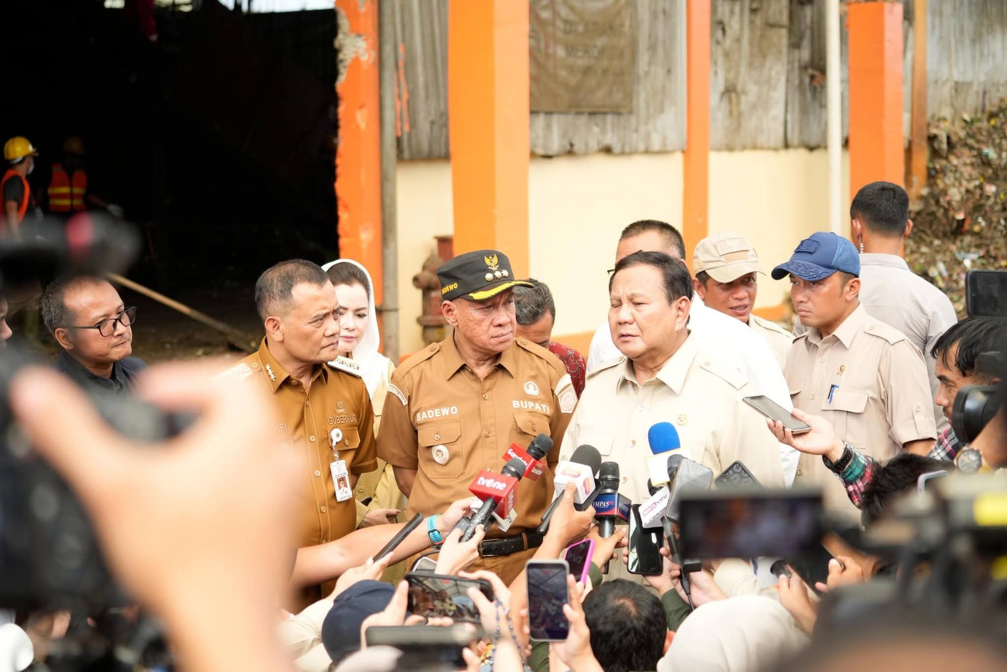 Presiden RI, Prabowo Subianto melakukan wawancara dengan sejumlah media seusai kunjungan ke Tempat Pemrosesan Akhir Berbasis Lingkungan & Edukasi Kaliori Kalibagor. (Foto : Suho/newsway.co.id)