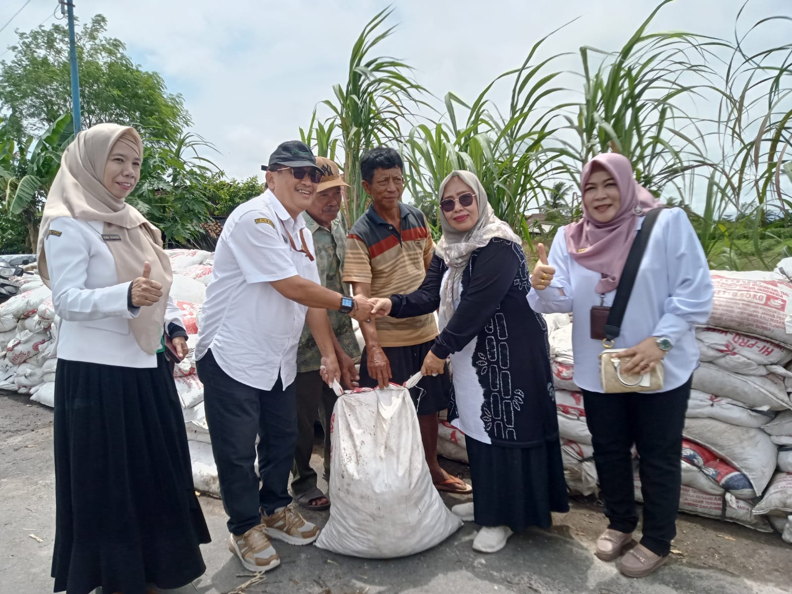 Ada dua Kelompok Tani yang diberikan bantuan pupuk organik sebanyak 727 karung yang kemudian dibagi masing-masing kelompok mendapat bagian 300 karung lebih.