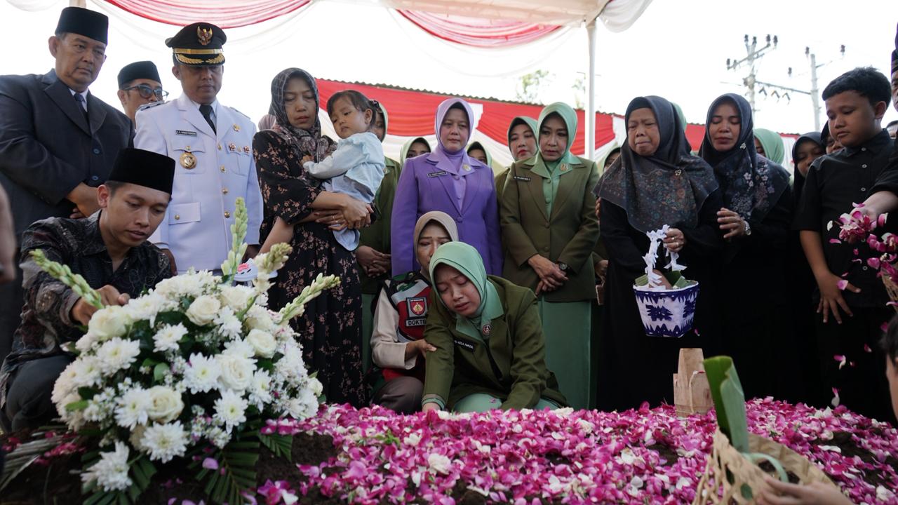 Sejak pagi, suasana duka menyelimuti area pemakaman. Keluarga, kerabat, serta warga sekitar memadati lokasi untuk memberikan penghormatan terakhir. Isak tangis terdengar mengiringi setiap tahapan prosesi, terutama saat peti jenazah yang dibalut bendera Merah Putih dibawa menuju liang lahat oleh barisan prajurit.