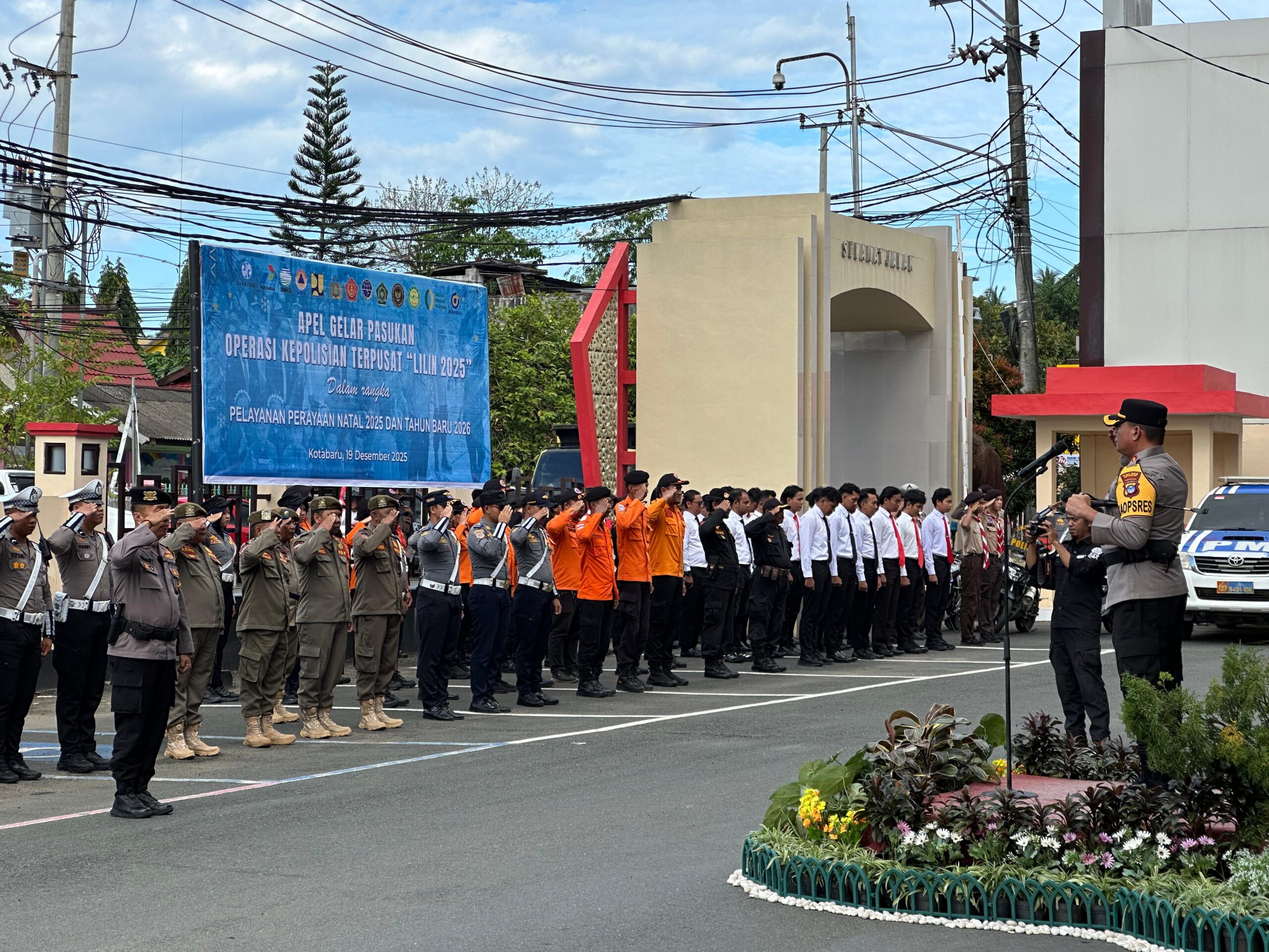 NEWSWAY.CO.ID, KOTABARU – Polres Kotabaru melaksanakan Apel Gelar Pasukan Operasi Kepolisian Terpusat “Lilin Intan 2025” sebagai langkah final pengecekan kesiapan pengamanan perayaan Natal 2025 dan Tahun Baru 2026 (Nataru). Kegiatan berlangsung di Lapangan Apel Polres Kotabaru pada Jumat (19/12/2025) sore.