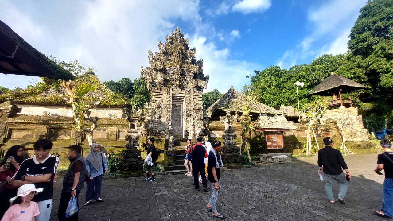 Selain berkeliling menikmati arsitektur khas Bali yang tertata rapi, wisatawan juga bisa menyewa pakaian adat Bali seharga Rp50.000 untuk berfoto atau sekadar merasakan suasana adat yang kental. Di sepanjang jalan utama, deretan kios menjajakan kain tenun, aksesoris, hingga buah durian lokal yang legit dan beraroma kuat.