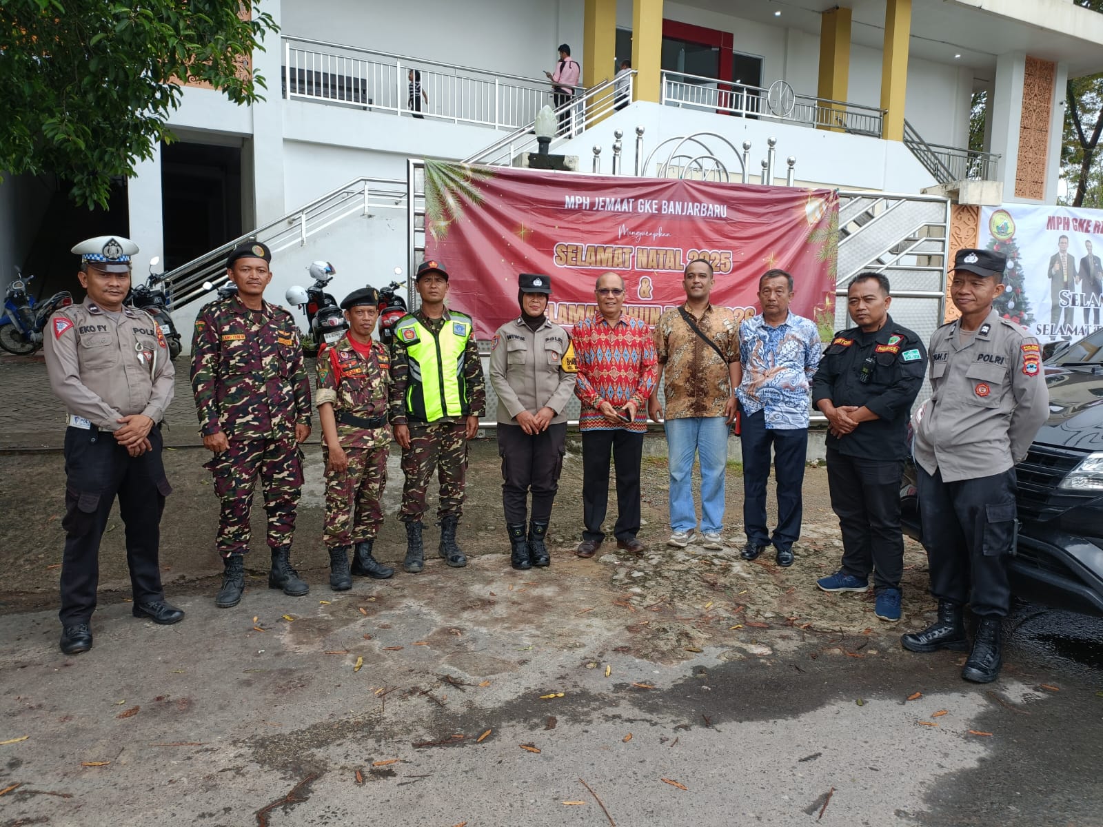 NEWSWAY.CO.ID, BANJARBARU – Polres Banjarbaru besinergi dengam Banser dan perguruan Pagar Nusa mengamankan prosesi ibadah Jemaat Gereja Kalimantan Evangelis (GKE) Maranatha Banjarbaru melaksanakan Perayaan Natal pada Rabu (24/12/2025) sore.
