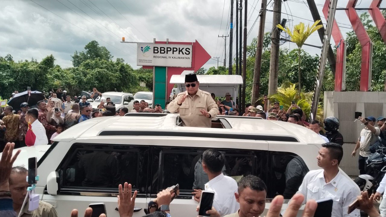 Presiden RI, Prabowo Subianto di Banjarbaru, Kalsel saat meresmikan Sekolah Rakyat di Banjarbaru (Foto : Muhammad Ervan Ariya Ramadani/newsway.co.id)