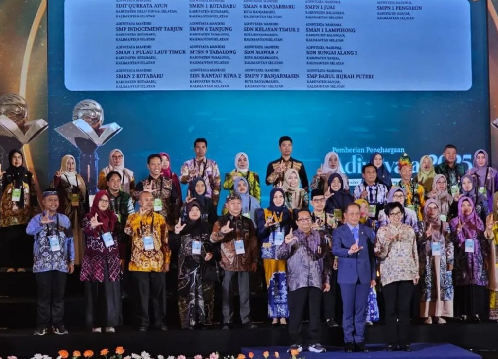 Penghargaan Adiwiyata 2025 tersebut diberikan oleh Kementerian Lingkungan Hidup Republik Indonesia kepada sekolah-sekolah di Kalimantan Selatan sebagai bentuk apresiasi atas komitmen dalam menciptakan lingkungan belajar yang bersih, sehat, dan berkelanjutan. Penyerahan penghargaan dilakukan langsung oleh Menteri Lingkungan Hidup RI, Hanif Faisol Nurofiq.