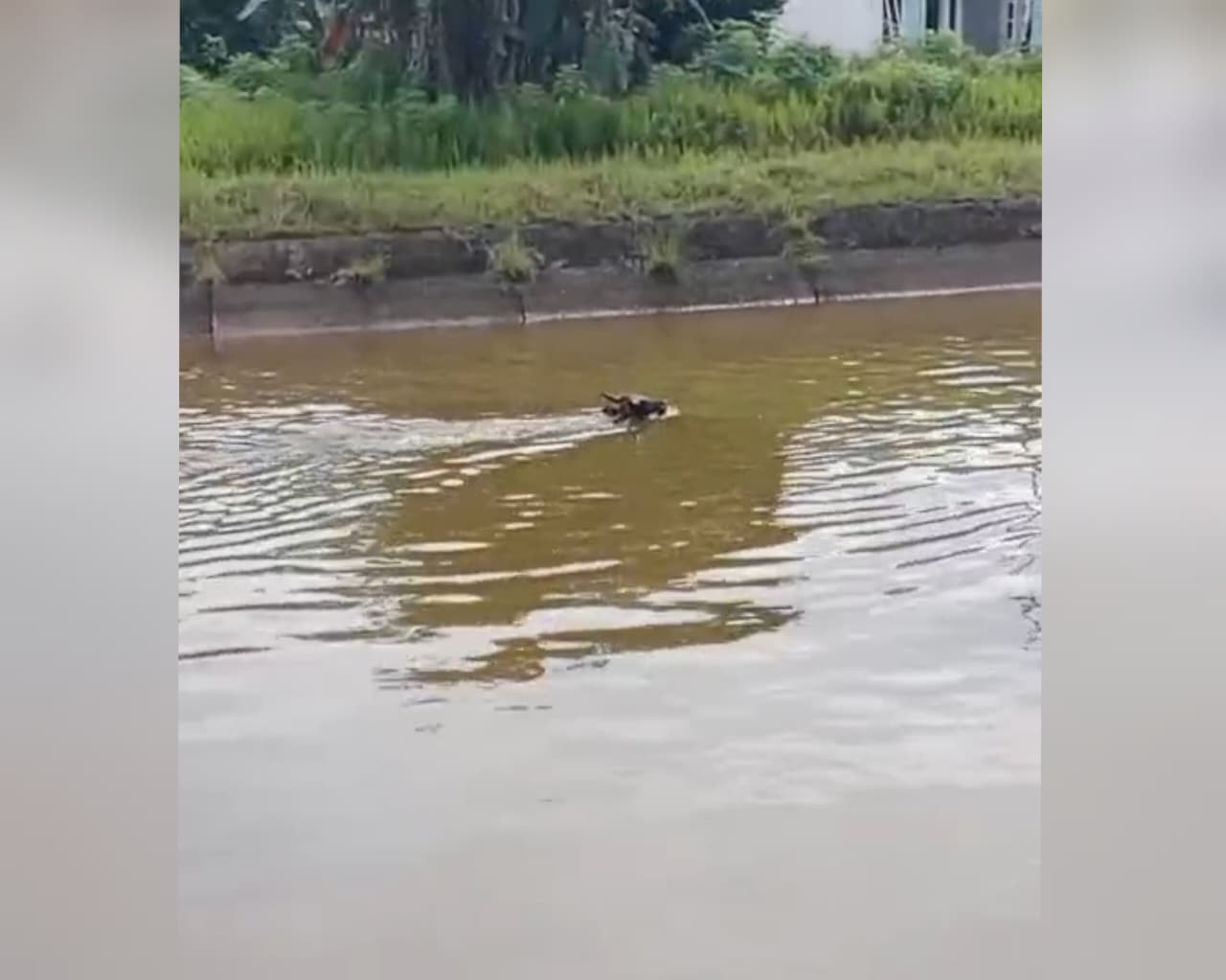 Sapi tersebut akhirnya tercebur ke dalam saluran air dan sempat terendam. Proses evakuasi berlangsung cukup sulit karena ukuran dan bobot sapi yang besar. Sejumlah warga sekitar turut membantu menarik hewan tersebut ke daratan.