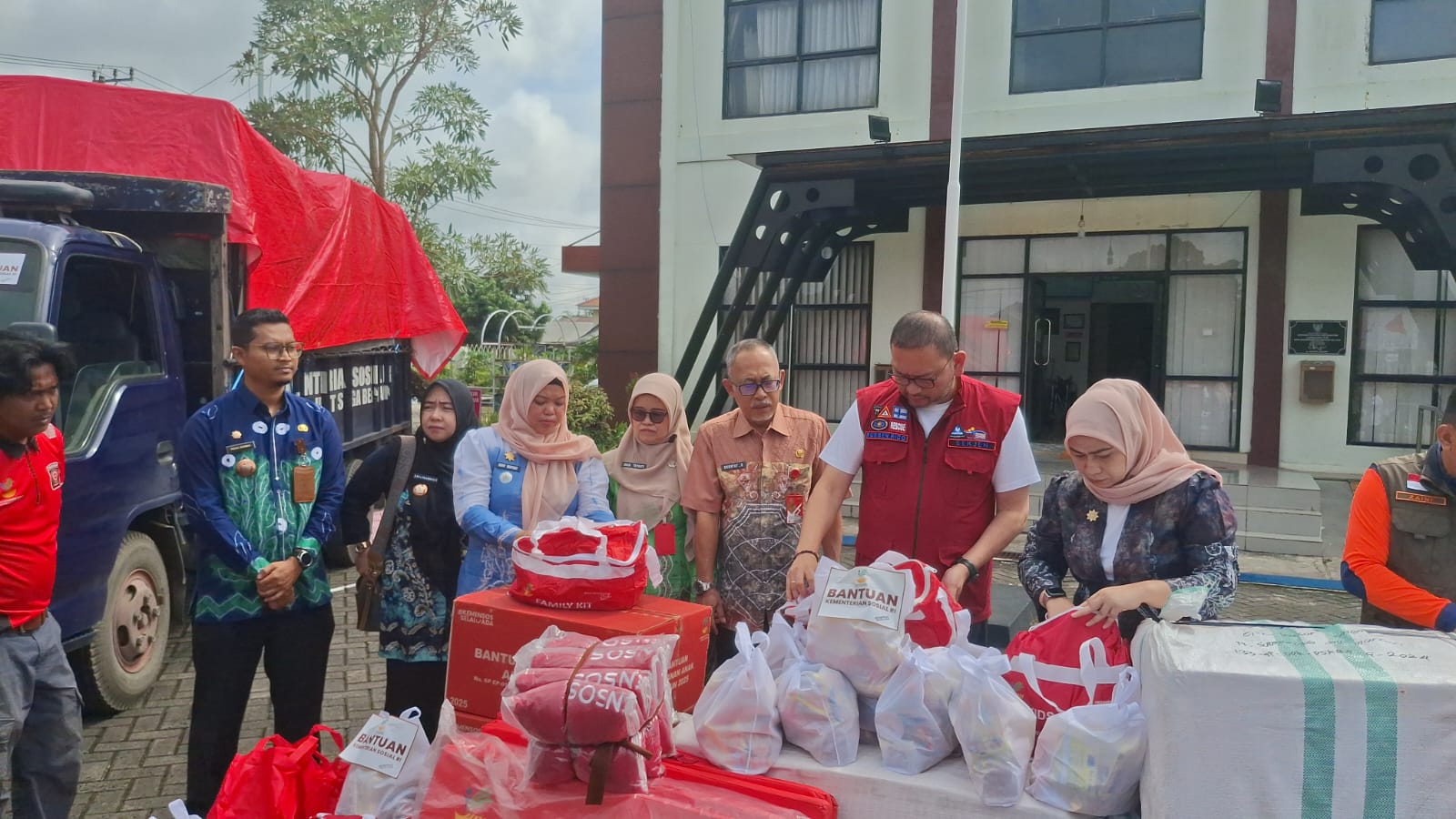 Sekjen Kemensos Salurkan Bantuan kepada Korban Banjir di Banjarbaru. (Foto: Newsway.co.id)