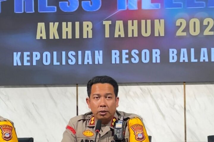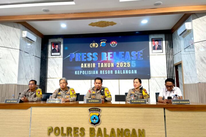 Kapolres Balangan AKBP Yulianor Abdi memimpin press release akhir tahun 2025. (Foto: nasrullah/newsway.co.id)