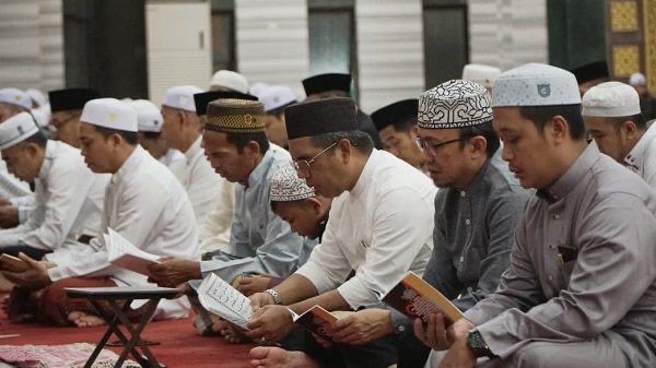 Sekretaris DPRD Balangan, H Tamrin (baju putih) saat menghadiri kegiatan Balangan Bermunajat. (Foto: mc balangan/newsway.co.id)