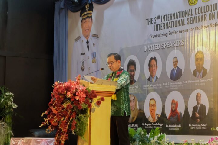 Asisten II Setda Balangan, Ir. Tuhalus memberikan sambutan pada seminar internasional bertema riset dan inovasi. (Foto:istimewa/newsway.co.id)