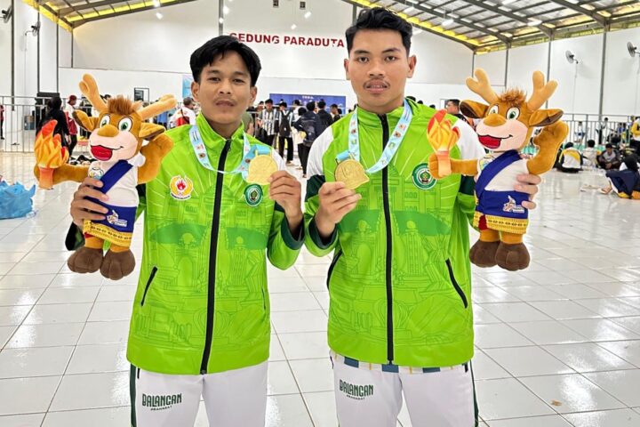 Dua atlet IPSI Balangan, M. Sandi Ananda dan Ahmad Ridha Al-Fatah, berhasil meraih medali emas pada ajang PORPROV XII Kalimantan Selatan 2025 di Tanah Laut. (Foto: istimewa/newsway.co.id