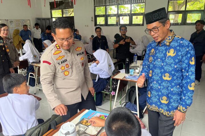 Kapolres Balangan AKBP Yulianor Abdi bersama dengan Wabup Balangan H. Akhmad Fauzi meninjau pendistribusian MBG. (Foto: humas polres/newsway.co.id)