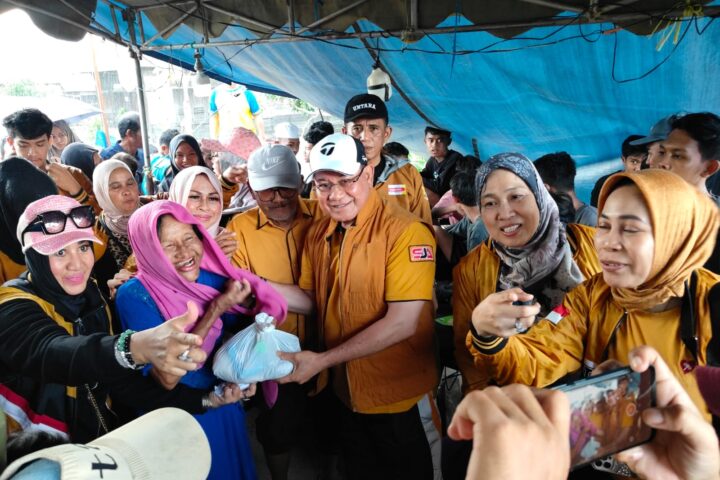 Ketua DPD Partai Hanura Kalimantan Selatan, Habib H. Sayed Jafar Alaydrus, menyerahkan bantuan kepada warga terdampak banjir di Desa Teluk Selong Ulu (Foto : Ist/newsway.co.id)