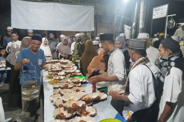 Jemaah momen 5 rajab sudah menghampar sajadah di Pertigaan Sungai Sipai Futsal Borneo. (Foto : Muhammad Ervan Ariya Ramadani/newsway.co.id)