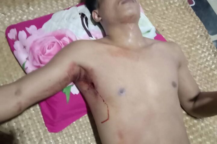 Korban dugaan penembakan tergeletak dalam kondisi terluka dengan bekas luka tembak di bagian ketiak kiri. ( Foto: Walhi Kalteng/newsway.co.id)