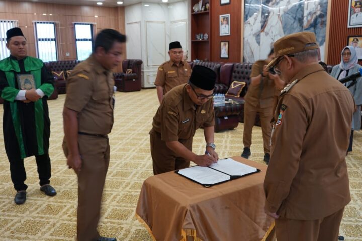 NEWSWAY.CO.ID, KOTABARU – Pemerintah Kabupaten Kotabaru resmi menjalin kerja sama dengan Lembaga Administrasi Negara (LAN) Republik Indonesia dalam pengembangan kapasitas dan pembelajaran Aparatur Sipil Negara (ASN). Kesepakatan tersebut dituangkan dalam penandatanganan Nota Kesepahaman (MoU) yang berlangsung di Aula Bamega Kantor Bupati Kotabaru, pada Senin (09/02/2026) sore.