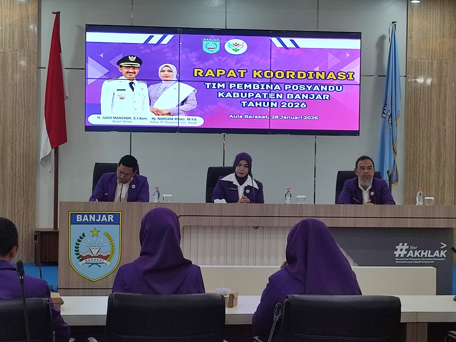 NEWSWAY.CO.ID, MARTAPURA – Tim Pembina Pos Pelayanan Terpadu (TP Posyandu) Kabupaten Banjar menggelar rapat koordinasi guna memperkuat sinkronisasi kinerja dan arah kebijakan program pelayanan dasar masyarakat. Kegiatan tersebut berlangsung di Aula Barakat Martapura, Rabu (28/01/2026).