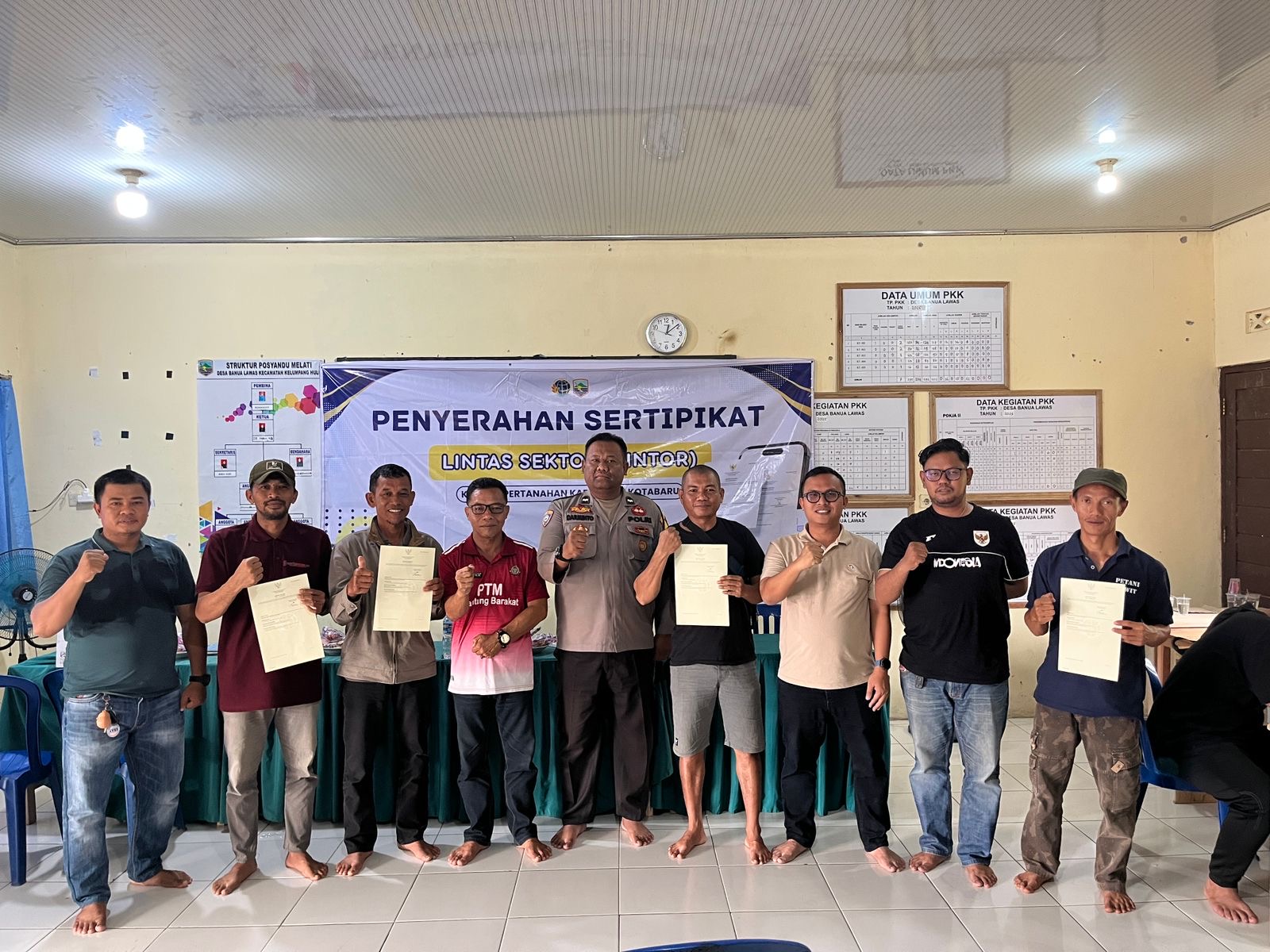 NEWSWAY.CO.ID, KOTABARU – Pemerintah Kabupaten Kotabaru bersama Kantor Pertanahan (BPN) Kabupaten Kotabaru secara resmi menyerahkan sertipikat tanah program Lintas Sektor (Lintor) kepada sejumlah pelaku usaha mikro dan nelayan di Desa Cantung Kiri Hilir, Desa Sungai Kupang, dan Desa Banua Lawas.